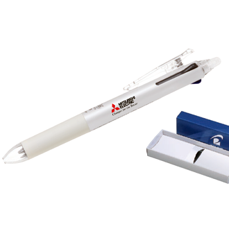 Caneta da marca PILOT, importada do Japão, com 3 cores (preto, azul e vermelho) + borracha na ponta. Indicada para clientes japoneses ou GKAM. Código catálogo JP: MC4007