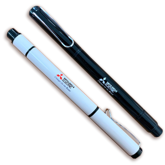 Caneta plástica personalizada com corpo e tampa plástica, possui clip de metal. marca texto na cor amarelo e escrita na cor azul. Ideal para eventos.