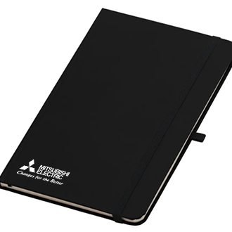 Caderneta, também conhecido como moleskine. Formato: 13,8 x 20 cm, 192 páginas, capa preta com logotipo ME branco.